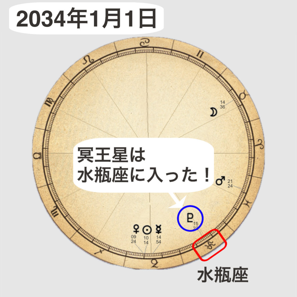 つまり2034年1月1日は冥王星水瓶座時代です。