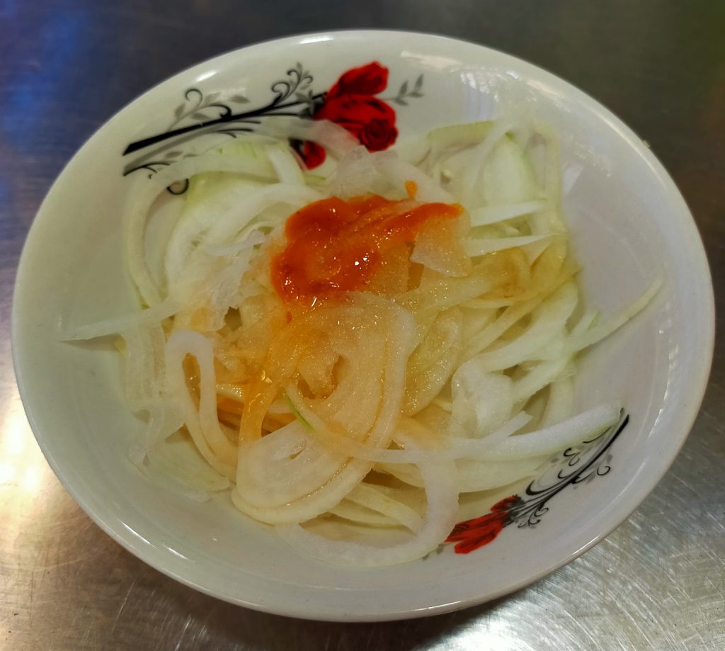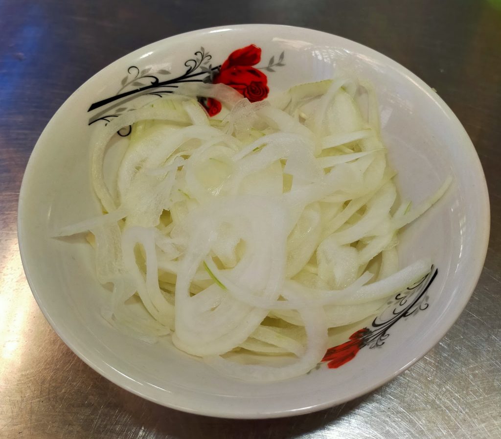 フォーを注文すると早速スライスされた玉ねぎの小皿が提供されました。