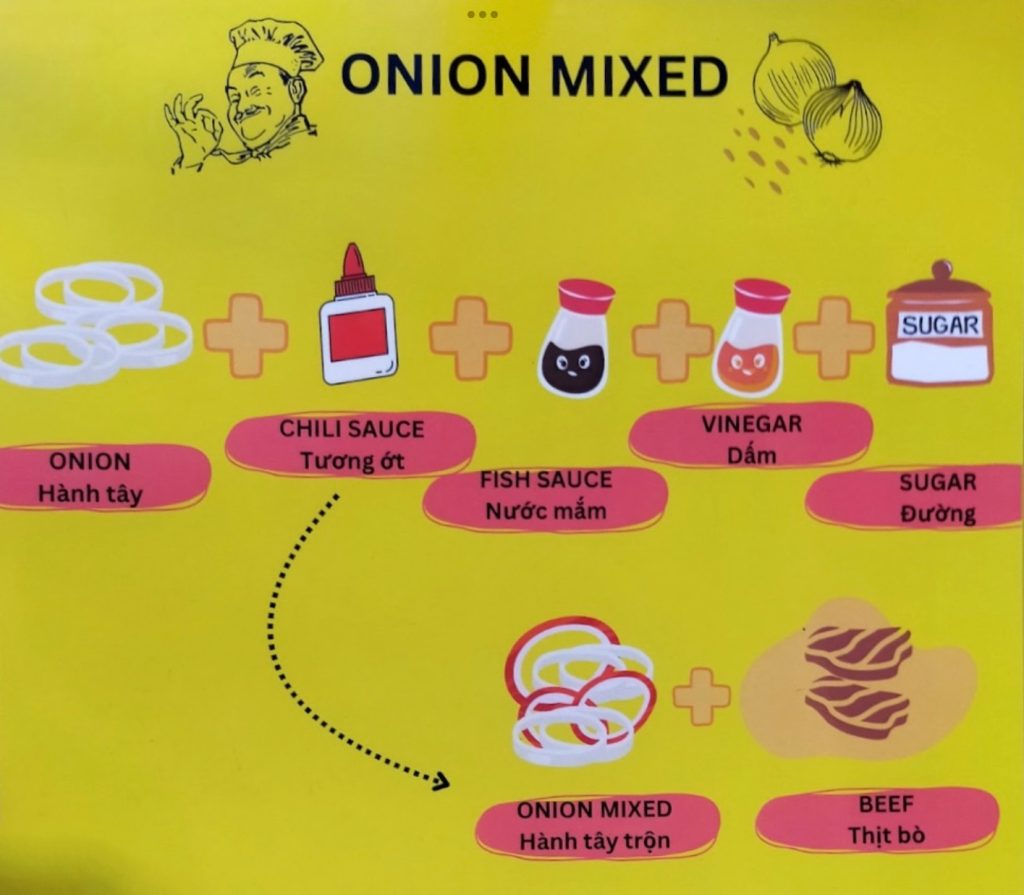 味付けされた玉ねぎとフォーの麺が絡み合って美味しい。