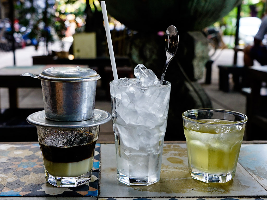 ベトナムの喫茶店では高級店から安いお店まで、コーヒーを注文すると必ず無料のお茶が提供されます。